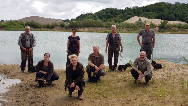 6 Teckel haben schon vorher in den Schalkholzer Kiesskuhlen ordentlich geübt,