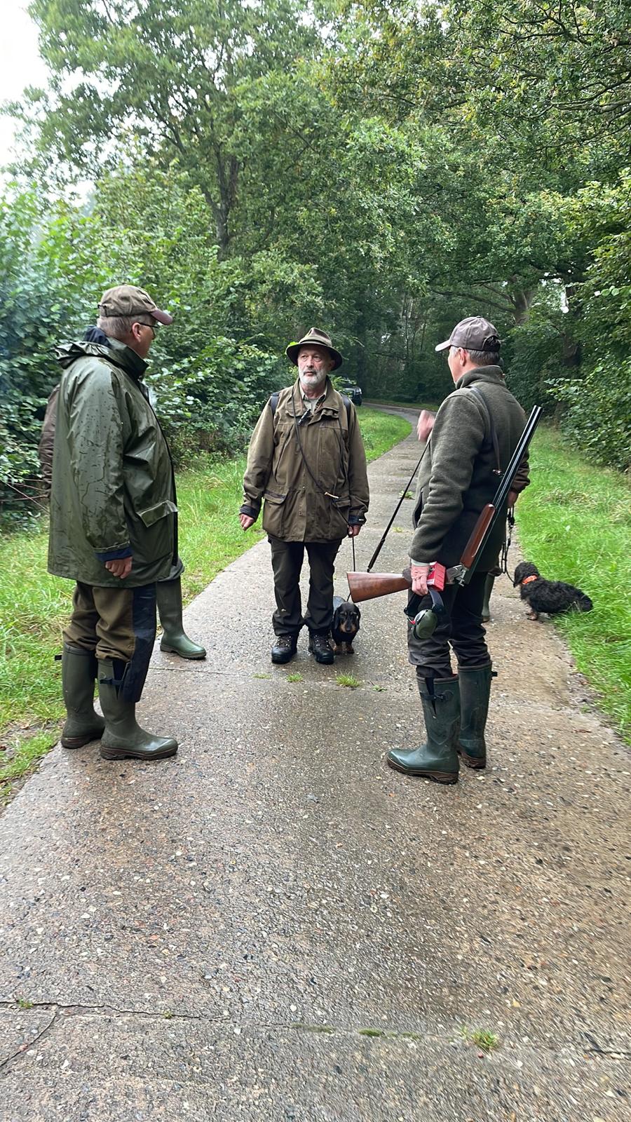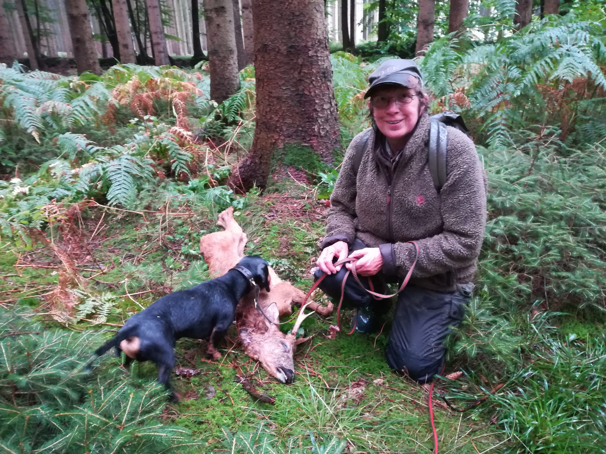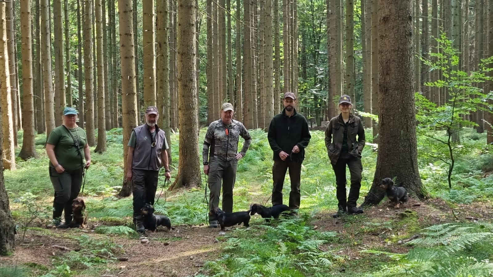 So wurde sich bei Fritz in Süderrade getroffen, um sich gemeinsam auf den Weg nach Bunsoh zu machen. Im Revier angekommen machten sich fünf Gespanne unter den aufmerksamen Augen der drei Richter daran, die fünf unterschiedlichen Fährten vom Anschuss mit Schweiß und Schnitthaar und natürlich Anschussbruch und Fährtenbruch über Stock und Stein, durch Busch, Farn und Bach mit drei Haken und Wundbetten auf, um hoffentlich am Ende am abgelegten Stück anzukommen. Und tatsächlich hatten alle Dackel ein Einsehen mit ihren Führern und brachten alle sicher ans Stück. Tradition wird bei den Dithmarscher Dackeln großgeschrieben und somit wurde jedes Mal nach erfolgreicher Suche das Stück von den anwesenden Jagdhornblässern verblasen.