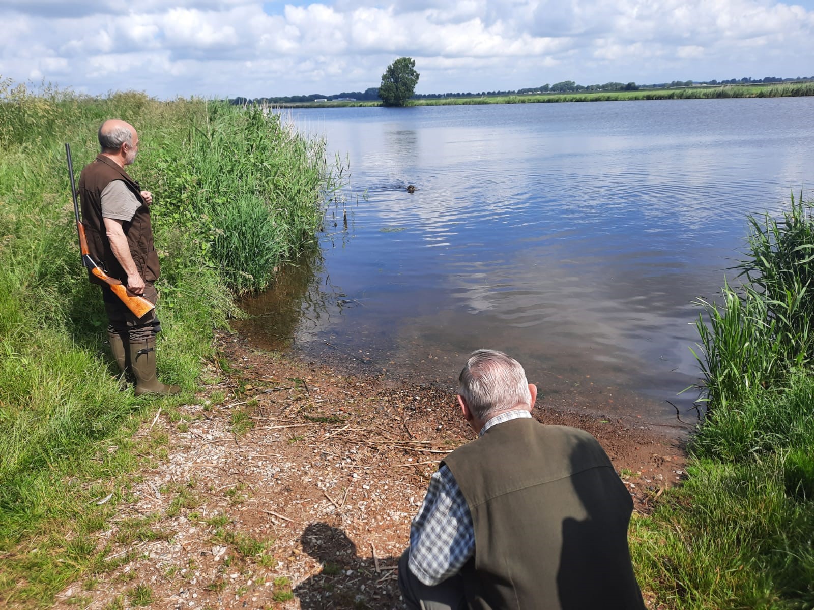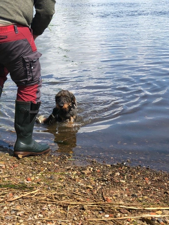 Gemeinsam ging es nun ins Revier von Jäger Volkert, dass direkt an die Eider grenzt. Eine Bootseinlassstelle, gut geschützt im Schilf, weit ab von allem. Besser konnten wir es gar nicht haben, und so konnten alle Dackel erfolgreich ihre Fähigkeiten unter Beweis stellen.